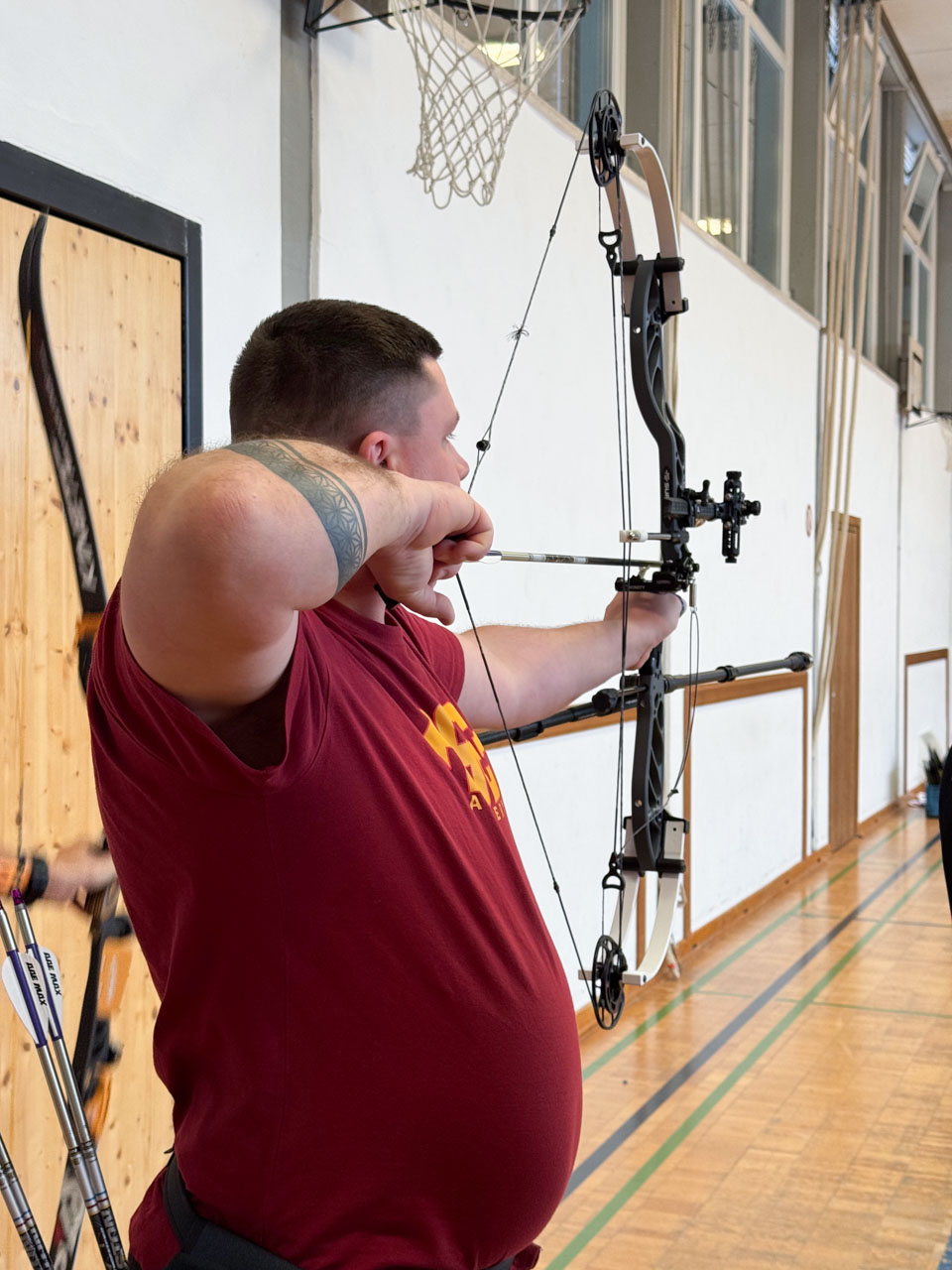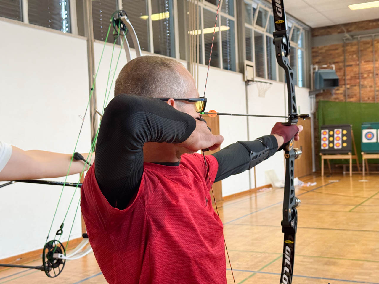 Am Vormittag ging das Bezirksklassenteam mit Andreas Hiergeist, Tobias Heinrichsdobler und Thomas Knödlseder an den Start. Für Andi und Tobias war es der erste Liga-Wettkampf überhaupt. Besonders bemerkenswert: Andi trat als Blankbogenschütze an, während der Großteil der anderen Schützinnen und Schützen – sowohl im eigenen Team als auch bei den Gegnern – mit dem Recurvebogen schoss.