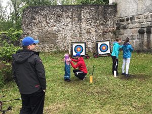 Das Wetter war leider nicht das allerbeste aber dennoch strömten einige Besucher in den Burghof und probierten sich begeistert durch Jonglieren, Musizieren, Basteln und vielem mehr. Nicht nur die Kinder nutzen die Möglichkeit ein paar Pfeile fliegen zu lassen, auch so manches Elternteil wollte sich einmal wie Robin Hood fühlen und testete seine Schießkünste an unserem Stand aus.