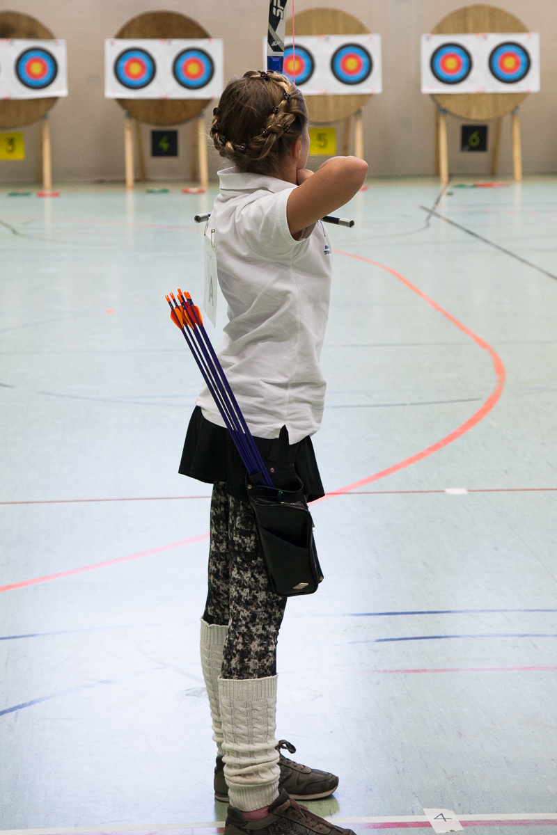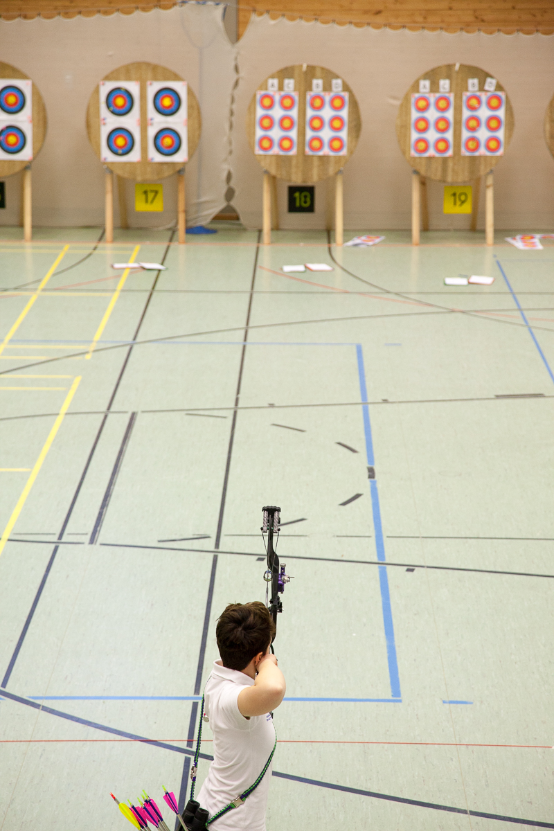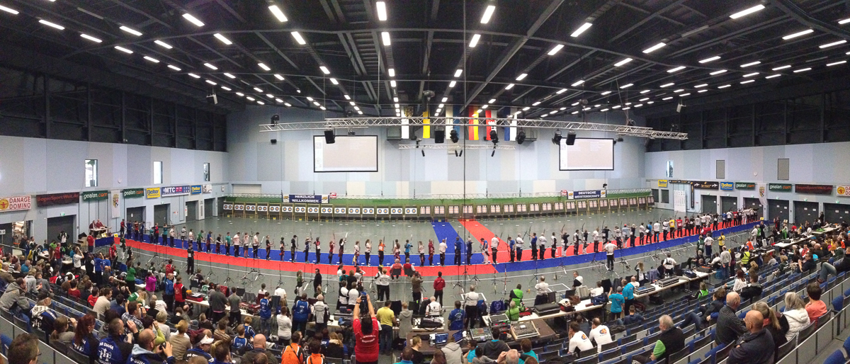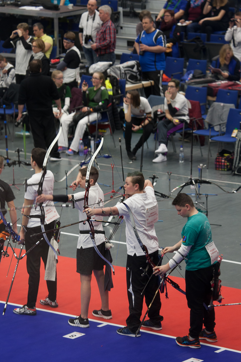 Pünktlich zur Hallenöffnung um 7 Uhr waren die beiden dann auch in Hof. Michael hatte also in aller Ruhe Zeit um seine Startnummer abzuholen, seinen Bogen aufzubauen, in der Bogenkontrolle checken zu lassen und sich umfangreich aufzuwärmen, bevor die Meisterschaft um 9 Uhr startete.
